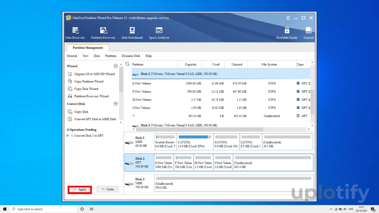 Pertama, kamu bisa mencoba melakukan convert MBR ke GPT tanpa kehilangan data dengan memakai aplikasi Minitool Partition Wizard.