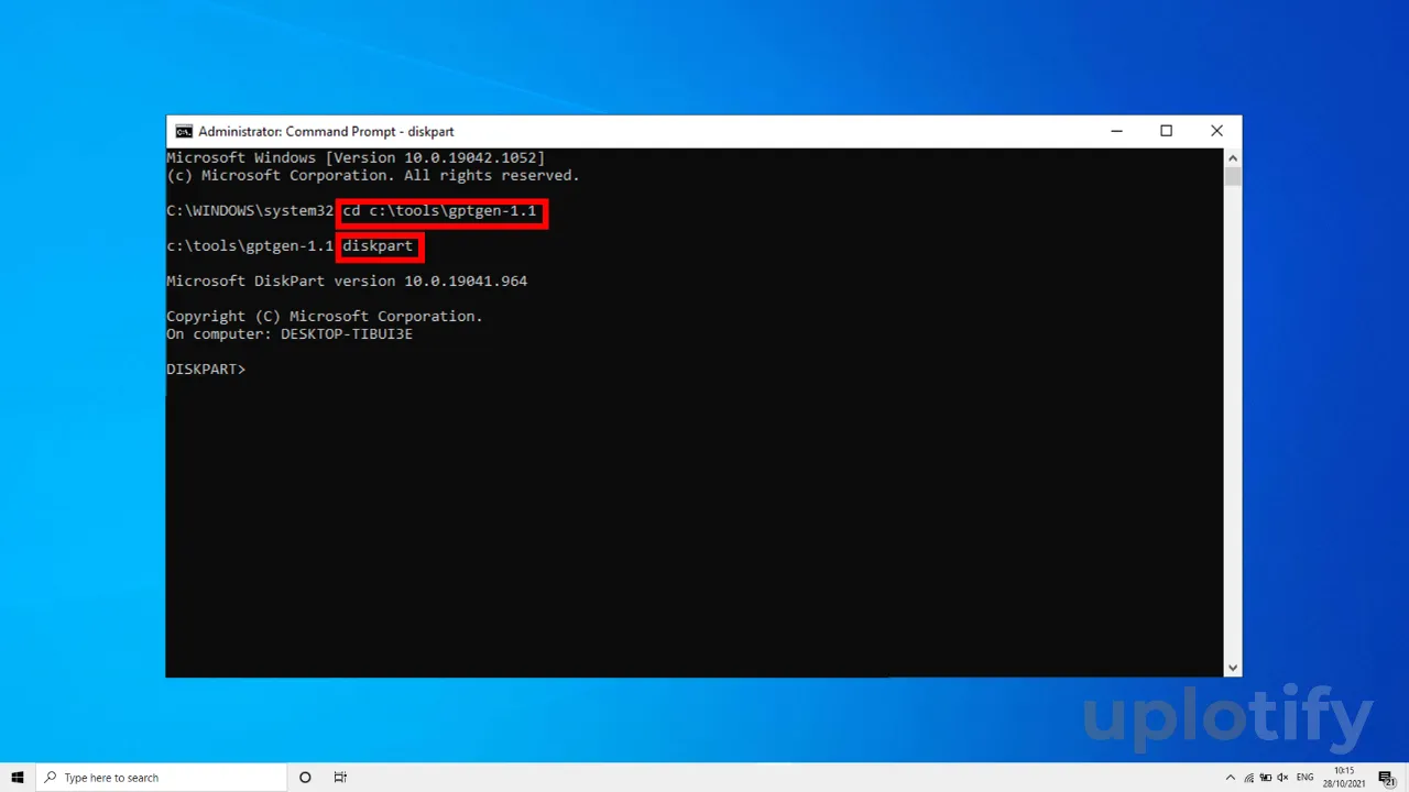 - Kemudian arahkan root di CMD ke tempat menyimpan file GPTGen tadi.