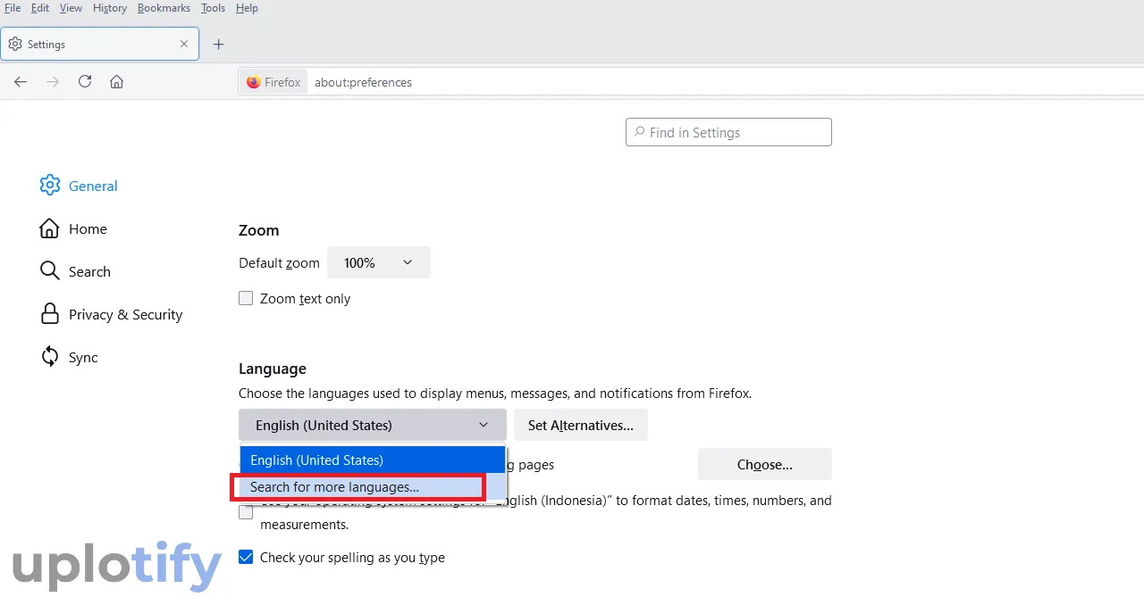 Sama seperti Google Chrome, Mozilla Firefox juga mendukung berbagai bahasa yang bisa kamu atur sesuai kebutuhan.
