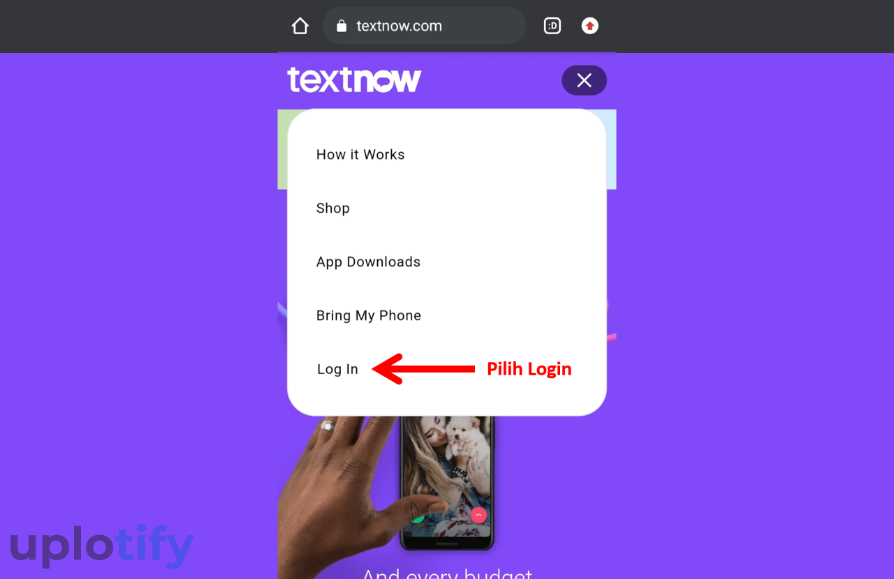 - Buka browser dan akses situs Textnow.